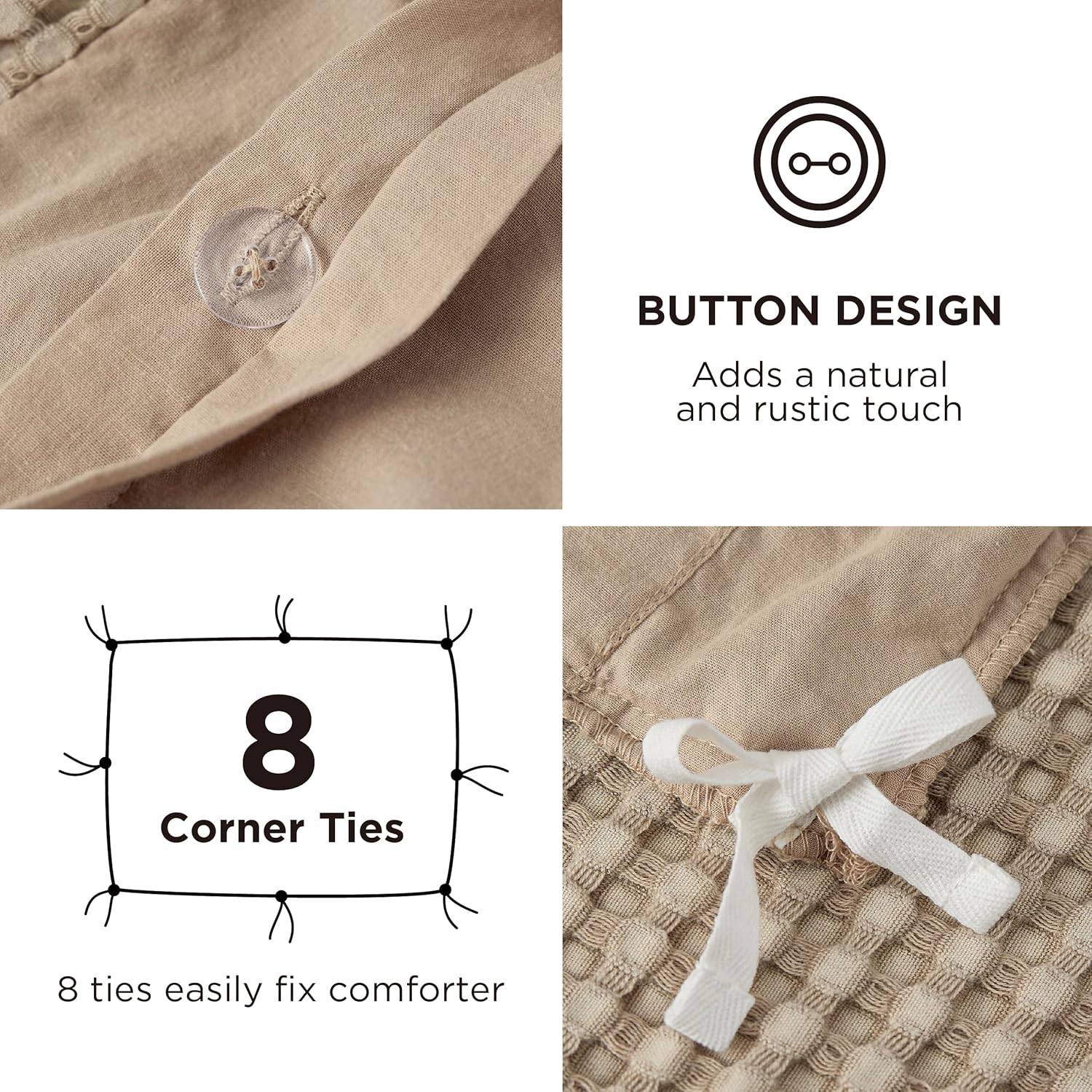 Durable Details & Hassle-Free Care: 8 internal ties ensure a snug fit to prevent duvet insert shifting, a convenient zipper closure for easy comforter securing, and dense, even stitching avoids seam issues for long-term use; machine wash in cold water on a gentle cycle for a like-new restoration, and the set meets high safety standards for reliable use.