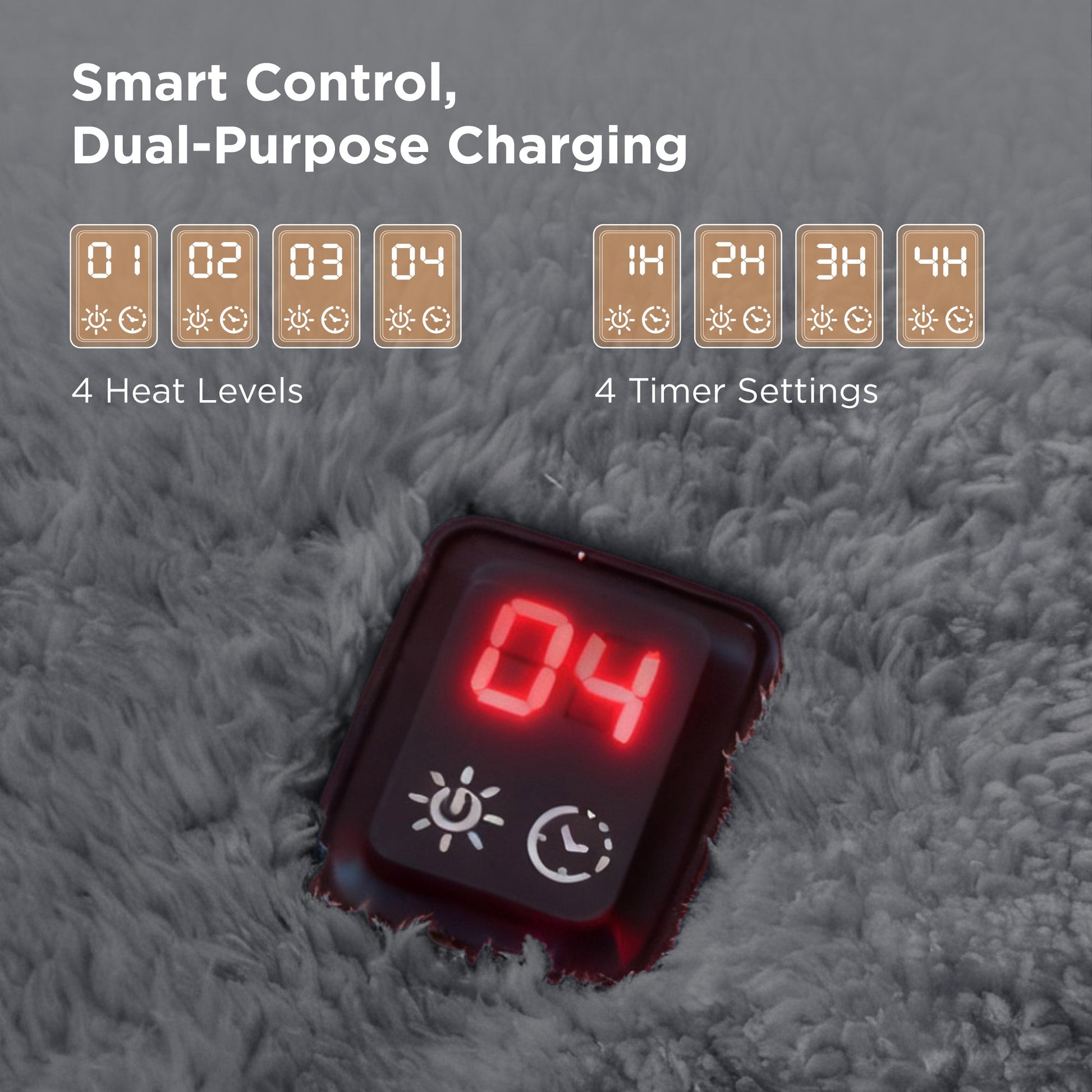 - Reliable Safety Controls: Features 4 heat levels and 4 timer settings (1–4 hours) for personalized comfort. Built-in overheat protection, 2-hour auto shut-off, and ETL & FCC certifications ensure safe, worry-free use.