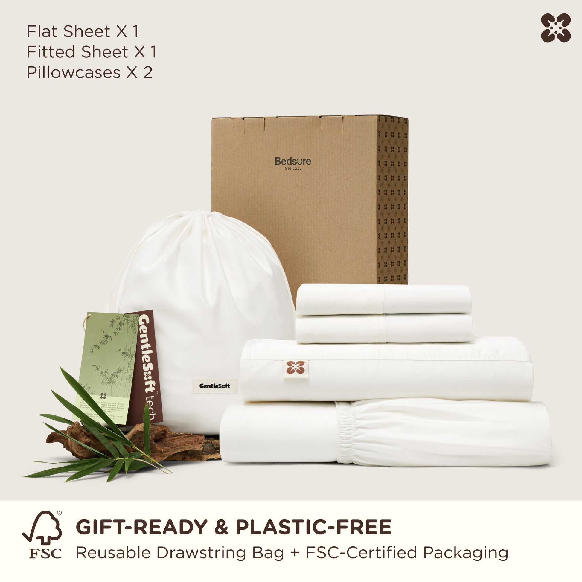 What's Included: 1 Fitted Sheet, 1 Flat Sheet, 2 Pillowcases