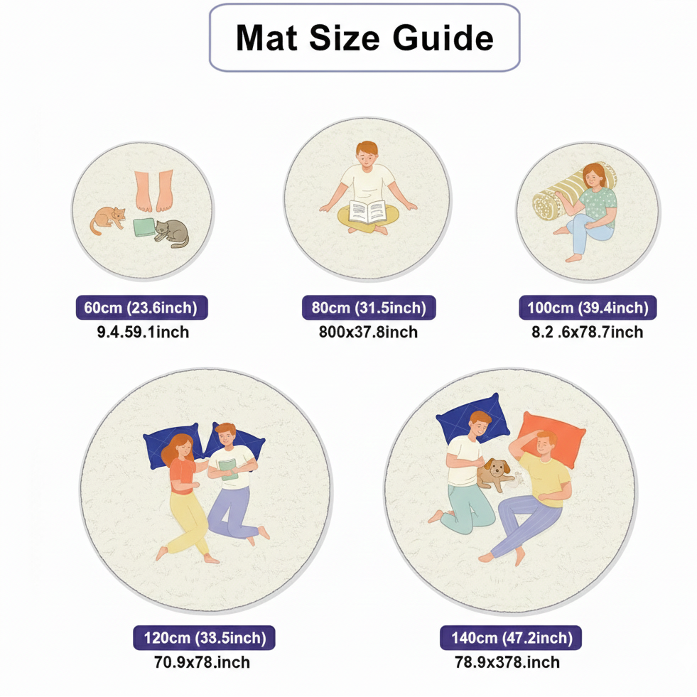 4つのサイズをご用意:1x1.5m、150x200cm、180x200cm、200x230cm。どんなスペースにも対応します。