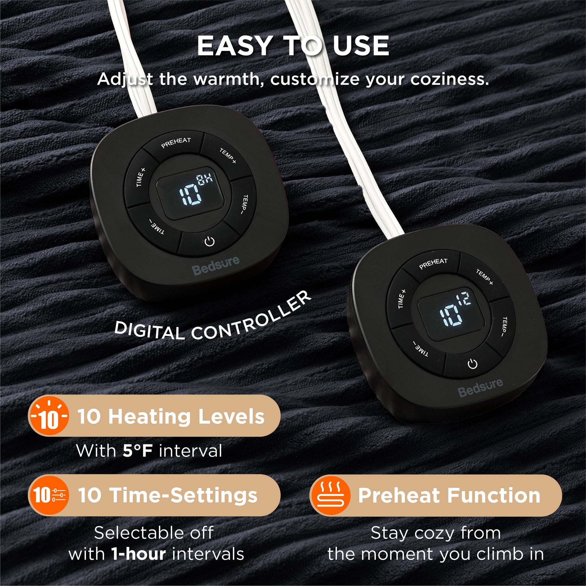 - Customizable Warmth: 6 heating levels and 10 time-settings powered by advanced heating wire technology for fast, consistent, and precise temperature control.